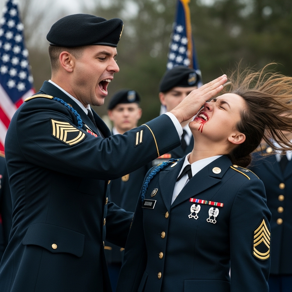 “«Débil, pequeña p*ta» — El capitán la abofeteó durante la inspección y luego vio su medalla…”
