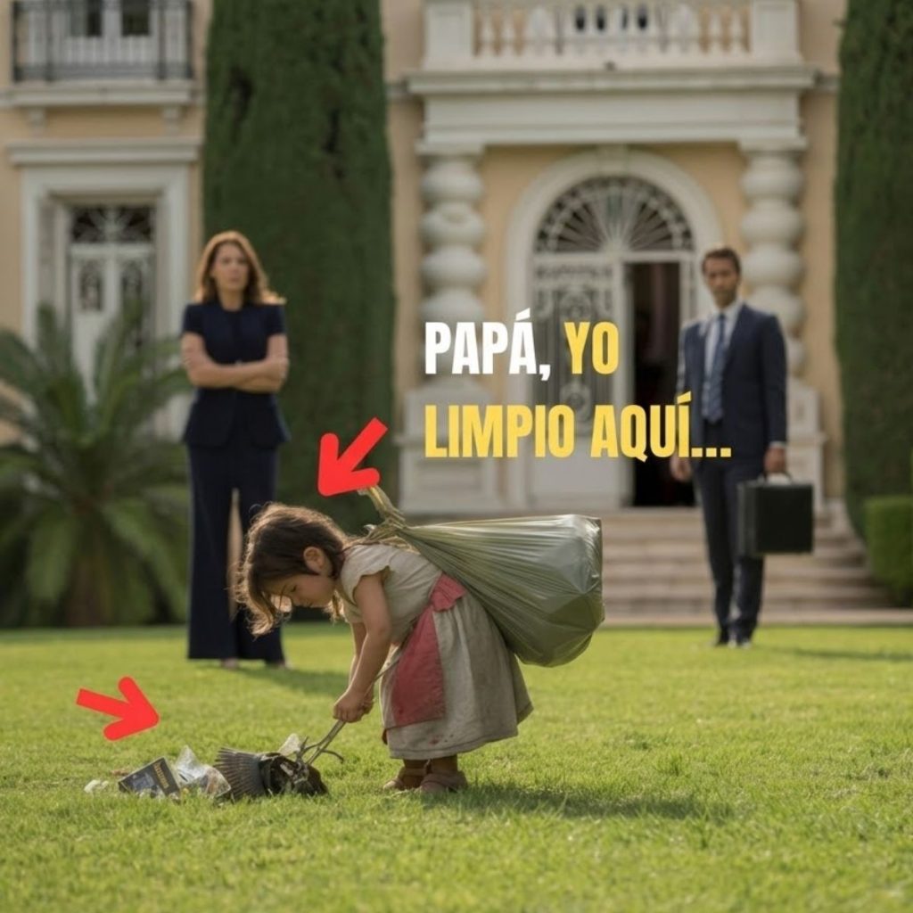 Isabella, su niña, estaba arrastrando dos bolsas de basura enormes hacia los contenedores del costado. En el lodo, se le hundían los zapatos blancos hasta el tobillo. El vestido rosa estaba rasgado, manchado de tierra y de algo oscuro que olía a comida podrida. Su cabello, que siempre olía a champú de fresa, estaba enredado y sucio. Y la expresión en su cara… no era cansancio de jugar. Era resignación. La mirada de alguien que ya aprendió que protestar no sirve.