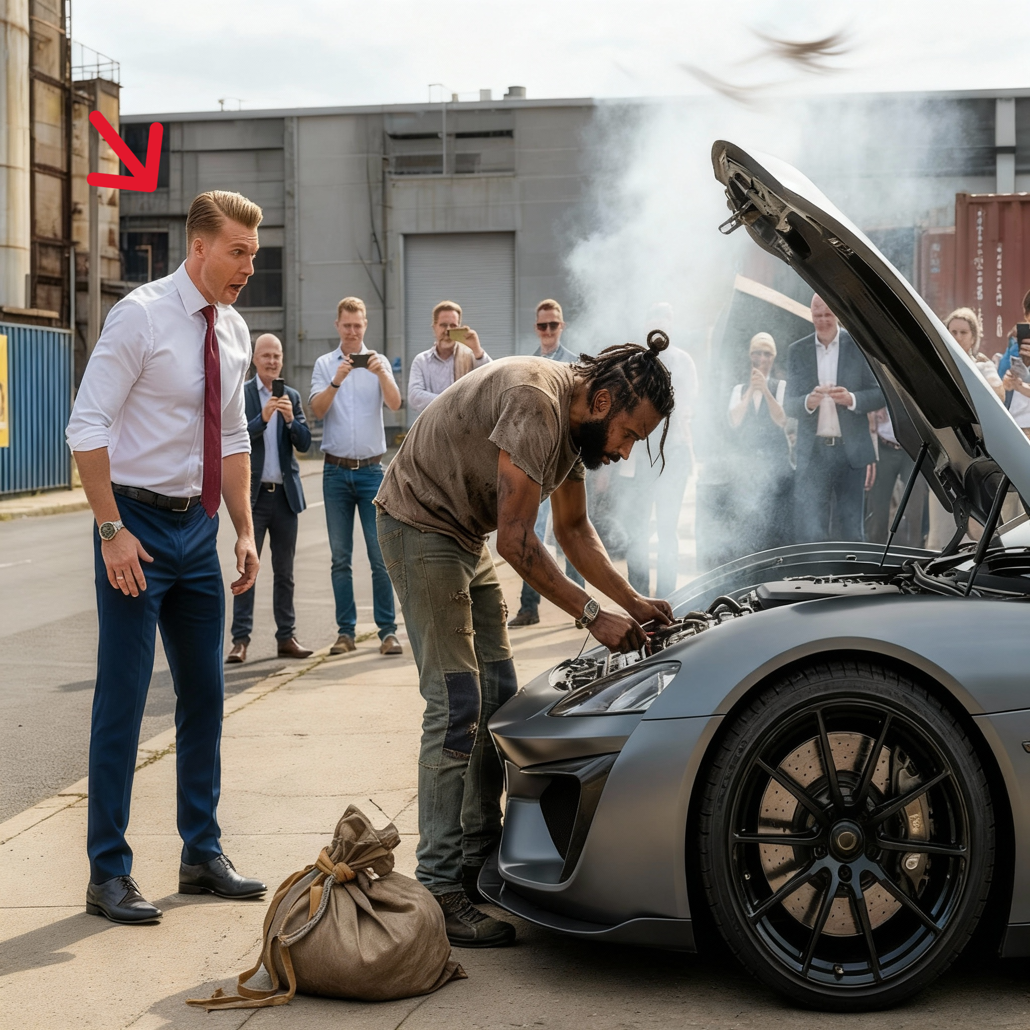 Anthony Wright acababa de terminar otra llamada infructuosa. Su frustración era evidente mientras la multitud congregada susurraba y señalaba el humeante vehículo de lujo. La reputación del multimillonario estaba en juego tanto como su inversión. Thomas respiró hondo y dio un paso adelante.