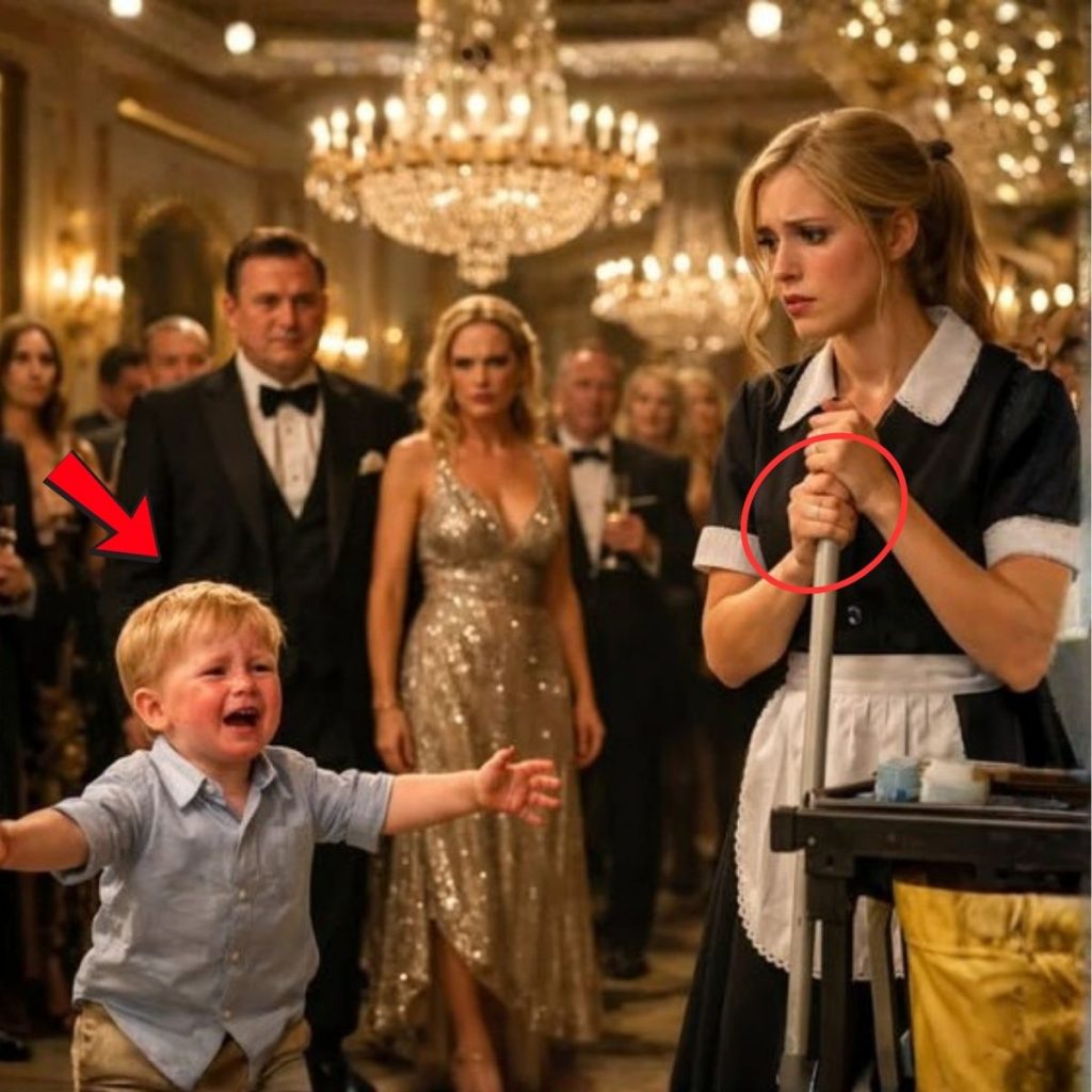 Las copas de cristal aún vibraban cuando el silencio cayó sobre el gran salón. Cincuenta invitados de la alta sociedad se giraron, confundidos, hacia la misma escena: Matías, el hijo de dos años de un poderoso magnate hotelero, corría por el piso de mármol, con las mejillas rojas de tanto llorar, directo a los brazos de… la criada.