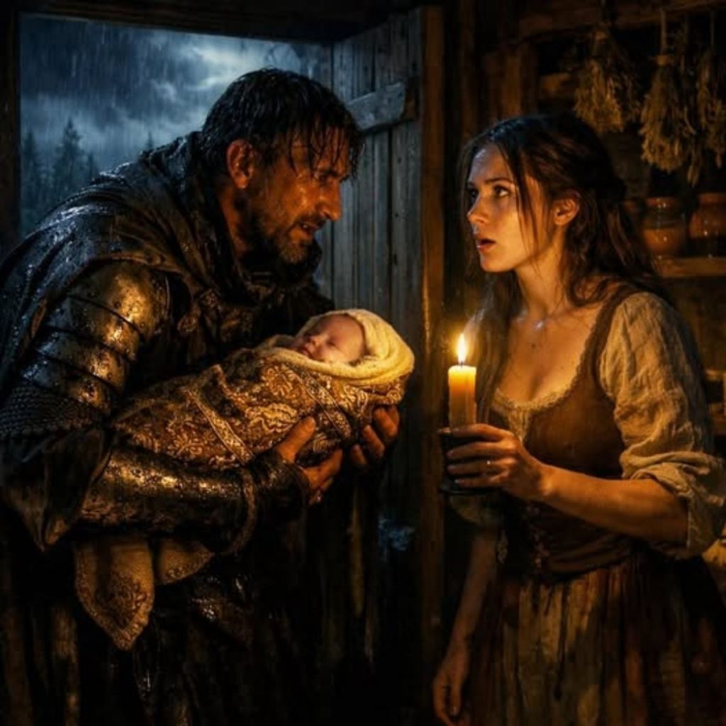 El hombre acomodó el bulto que llevaba, revelando a un bebé envuelto en una tela bordada con hilo dorado—más fina que cualquier cosa que una campesina llegaría a tocar.