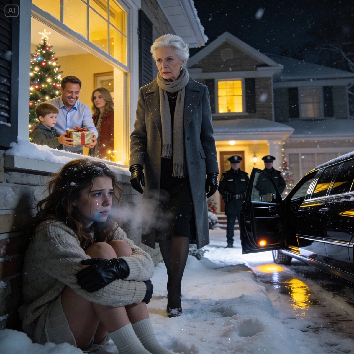El frío no fue lo peor de la Nochebuena; mi padre sí. A -10 °C, me echó a la nieve por “responderme” en la cena y cerró la puerta con llave como si nada. Solo pude mirar por la ventana mientras se reían, rasgaban el papel de regalo y abrían los regalos sin mí. Se me entumecieron las manos. Se me heló la respiración. Entonces, exactamente una hora después, una limusina negra se detuvo frente a la casa. Mi abuela multimillonaria salió, me vio temblar, los miró dentro y susurró una palabra: “Demoler”.