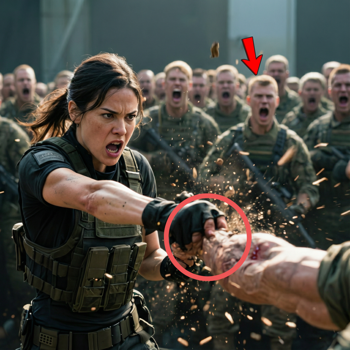 El círculo de soldados se estrechó. Algunos comenzaban a grabar con sus móviles pese a las órdenes en contra; otros contenían la respiración. Lo que estaba ocurriendo no era un ejercicio, era una escena cargada de tensión real.