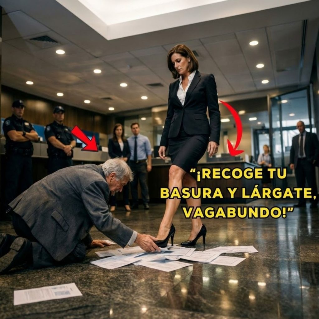 La puerta giratoria del banco se abrió con un silbido suave. El murmullo general se apagó poco a poco, como cuando alguien baja el volumen sin pedir permiso. Un hombre alto, de traje oscuro impecable, entró acompañado por dos asistentes. No miró los anuncios, ni el tablero de turnos. No preguntó nada. Caminó directo hacia el centro del vestíbulo, como si ya supiera exactamente dónde estaba lo que buscaba.