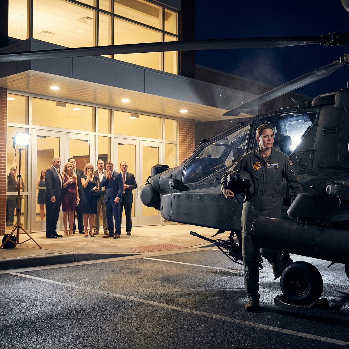 En lugar de eso, miré el Apache estacionado en la pista aquella mañana, su silueta oscura recortándose contra el amanecer. Me había ganado ese asiento en la cabina con años de entrenamiento, fracasos, golpes y silencio. Sin atajos. Sin favores. No planeé un discurso. No ensayé venganza. Simplemente decidí llegar tal como era.