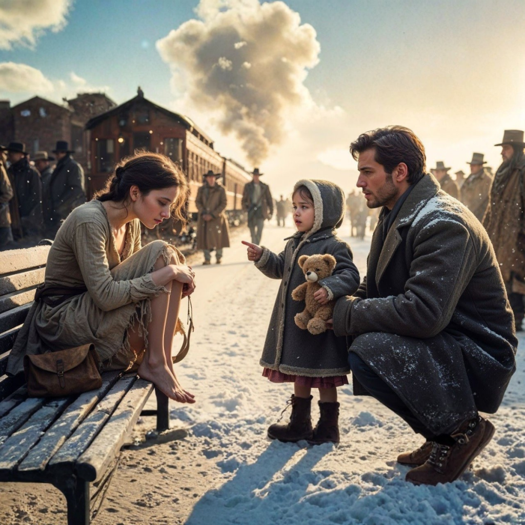 Un hombre bajó del tren anterior con el abrigo fino y el orgullo alto. Se acercó, la examinó de arriba abajo con impaciencia… y chasqueó la lengua.