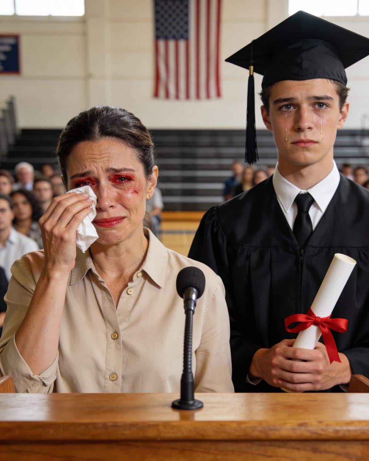 Algunos de los que se habían burlado bajaron la mirada. Otros se cubrieron la cara. Los maestros parpadearon con fuerza. Incluso el director se secó los ojos. Mi madre también lloraba… pero lo suyo no era vergüenza.