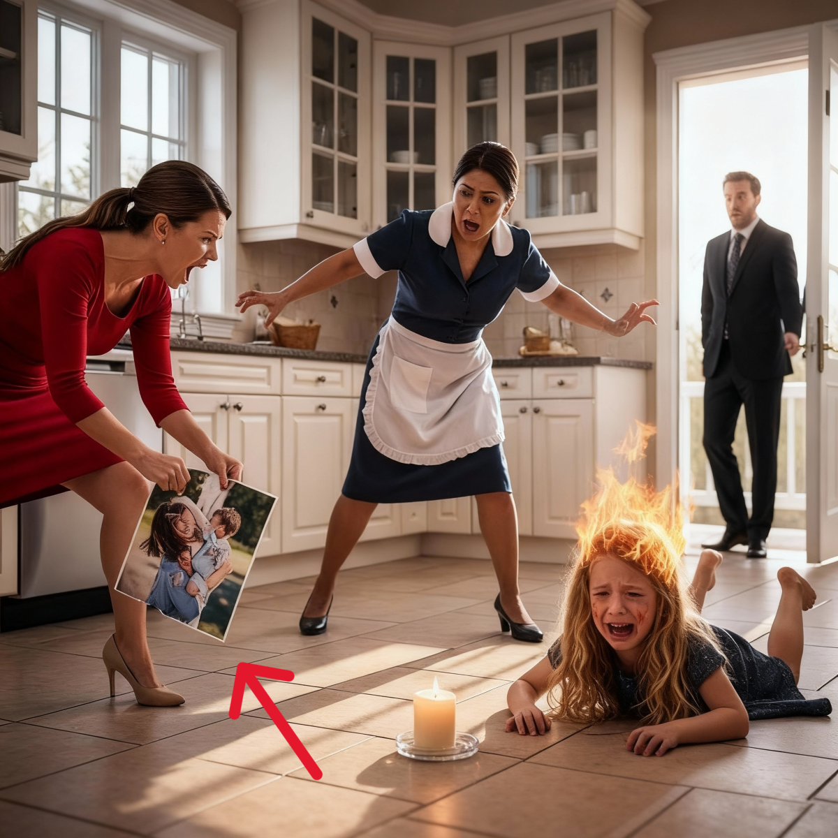 El grito de Rosa rompió el silencio de la mansión. Sus manos agarraron la muñeca de Elena con fuerza desesperada, tratando de arrancar el encendedor que bailaba peligrosamente cerca del cabello rubio de Clara. La pequeña e hipnótica llama se reflejaba en el terror de los ojos de la niña de 7 años, que estaba paralizada por el miedo en el suelo de la cocina.