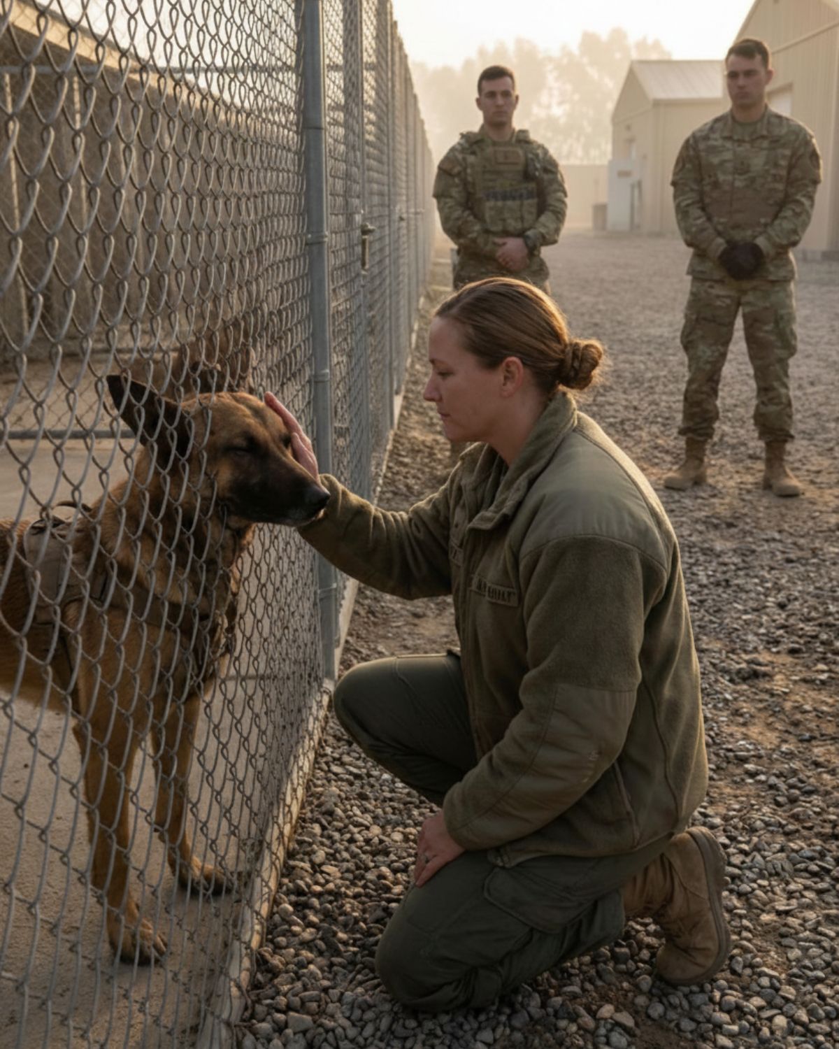 Alguien murmuró que el mando debía sacar a esa mujer de allí antes de que perdiera una mano; otro no dijo nada, solo cruzó los brazos y observó con la certeza distante de quien ha visto demasiados fracasos como para creer en excepciones. Y dentro del recinto reforzado, al borde del complejo, estaba Vandal: ochenta y siete libras de Malinois belga hecho de músculo, tejido cicatricial y rabia sin resolver. Un perro de trabajo militar que había mandado a cuatro adiestradores a urgencias en menos de cuatro meses y cuyo papeleo para la eutanasia ya estaba completo, esperando únicamente una última firma y el tipo de silencio que venía después.