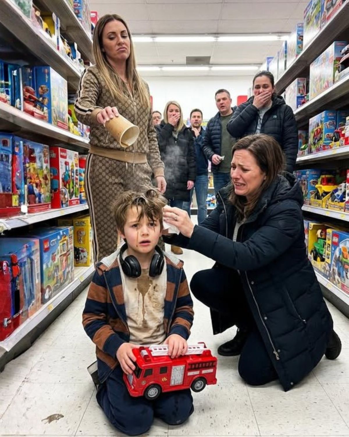 La gente gritó, alguien dejó caer una caja, otra voz llamó a un gerente, y yo ya estaba de rodillas, limpiándole la piel con mis mangas, temblando, pidiéndole perdón a él y a todos, aunque nada de esto fuera culpa nuestra, aunque mis manos ardieran mientras intentaba deshacer lo que no se podía deshacer.