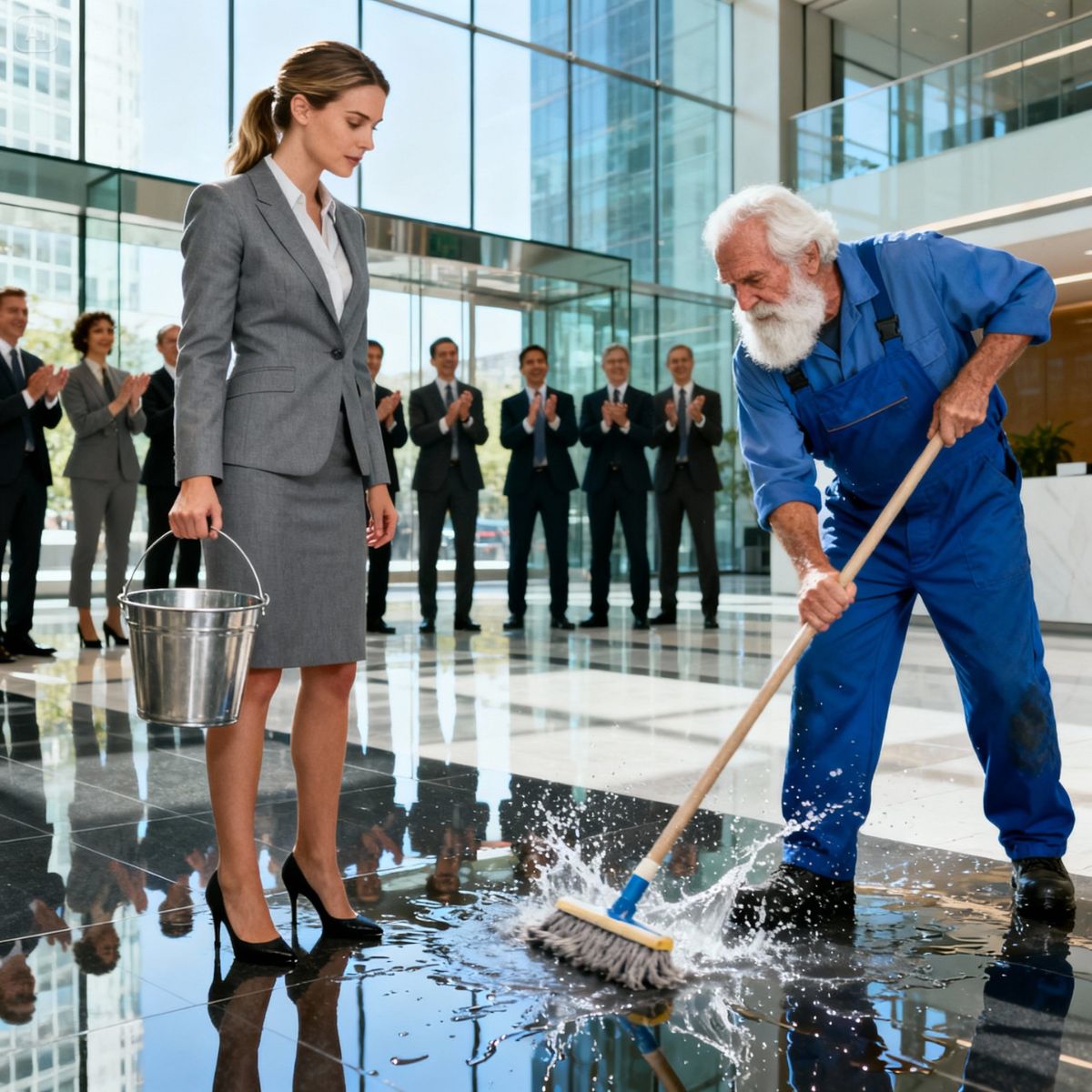 Mientras caminaba por mi propia empresa disfrazado de conserje, mi alta ejecutiva se burló: «La gente como tú no pertenece aquí». Su tono fue la primera advertencia de que algo dentro de mi imperio había salido mal. Me quedé en silencio, memorizando cada rostro que se rió. Treinta minutos después, convoqué una reunión de emergencia del consejo y revelé quién era en realidad… y para el mediodía, mi siguiente movimiento dejó a todo el edificio en caos.