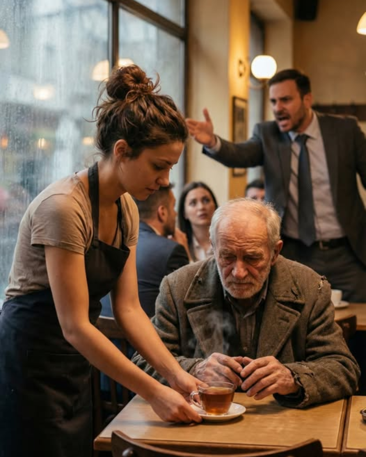Un cliente arrogante se burló de un anciano que, con manos temblorosas, contaba monedas para un té, pero la camarera, delante de todos, se negó a atender al rico y se dedicó al abuelo, sin sospechar quién era en realidad.