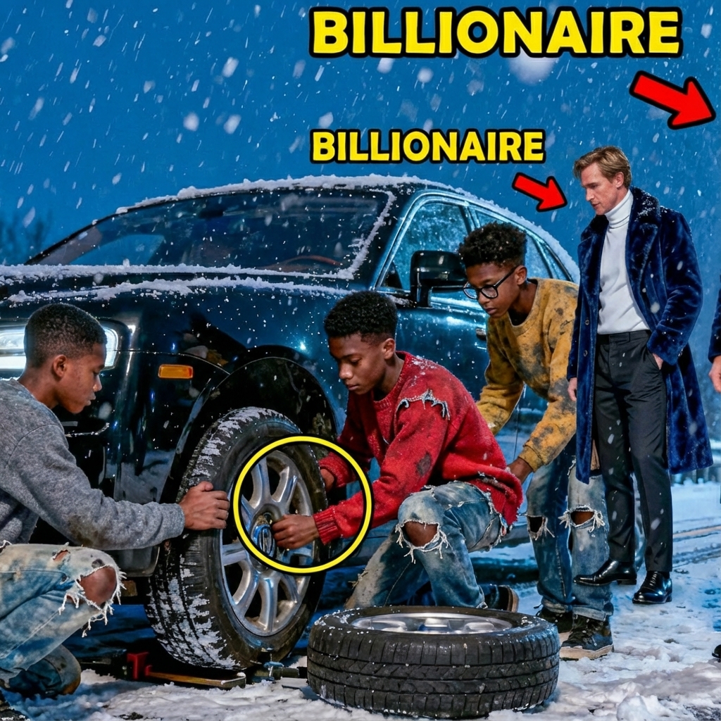 3 chicos negros ayudan a un multimillonario a arreglar su neumático pinchado, al día siguiente, un Rolls-Royce apareció en su casa.