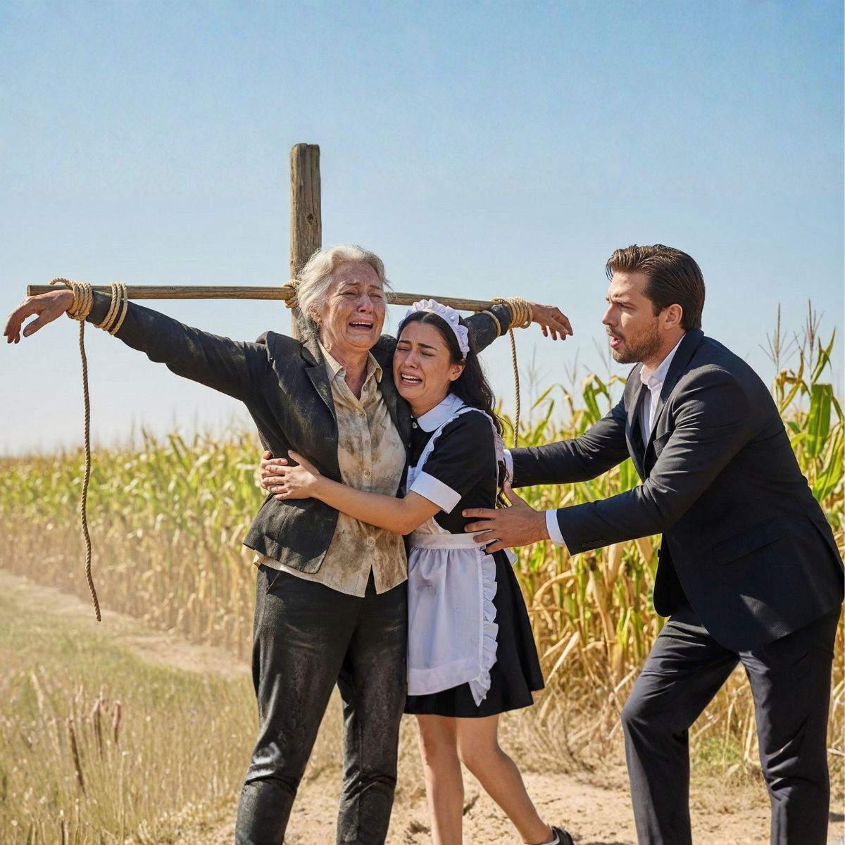 LA EMPLEADA QUEDÓ PARALIZADA AL VER UN “ESPANTAPÁJAROS” VIVO… ERA LA MADRE DEL MILLONARIO
