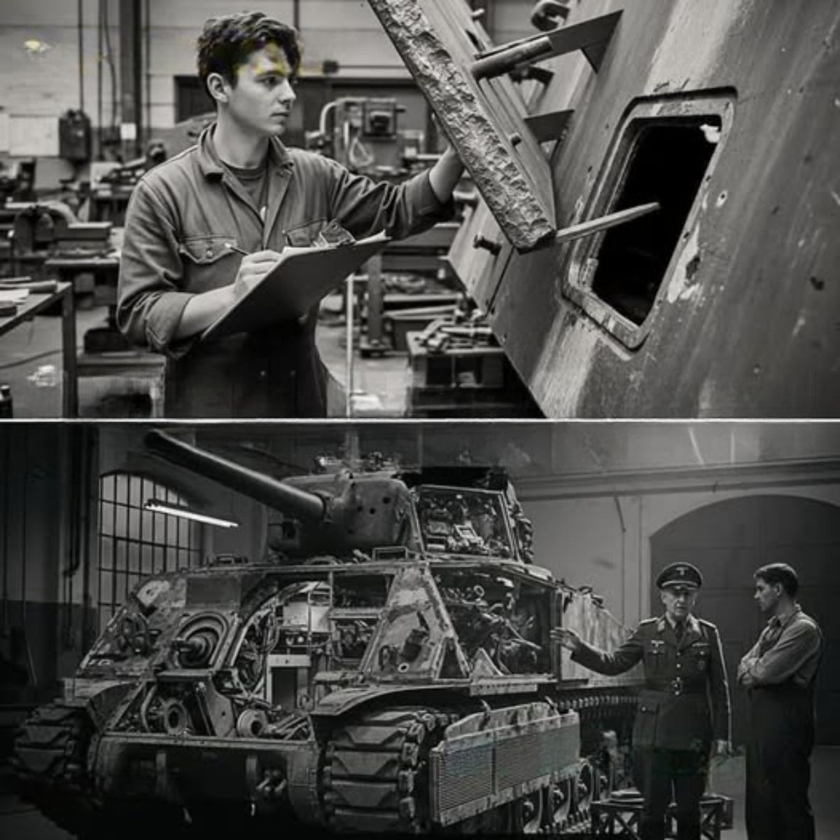 Cuando los ingenieros alemanes abrieron un Sherman y encontraron el verdadero secreto… En el invierno de 1944, un grupo de ingenieros alemanes se reunió alrededor de un tanque Sherman estadounidense destrozado como cirujanos preparando una autopsia.