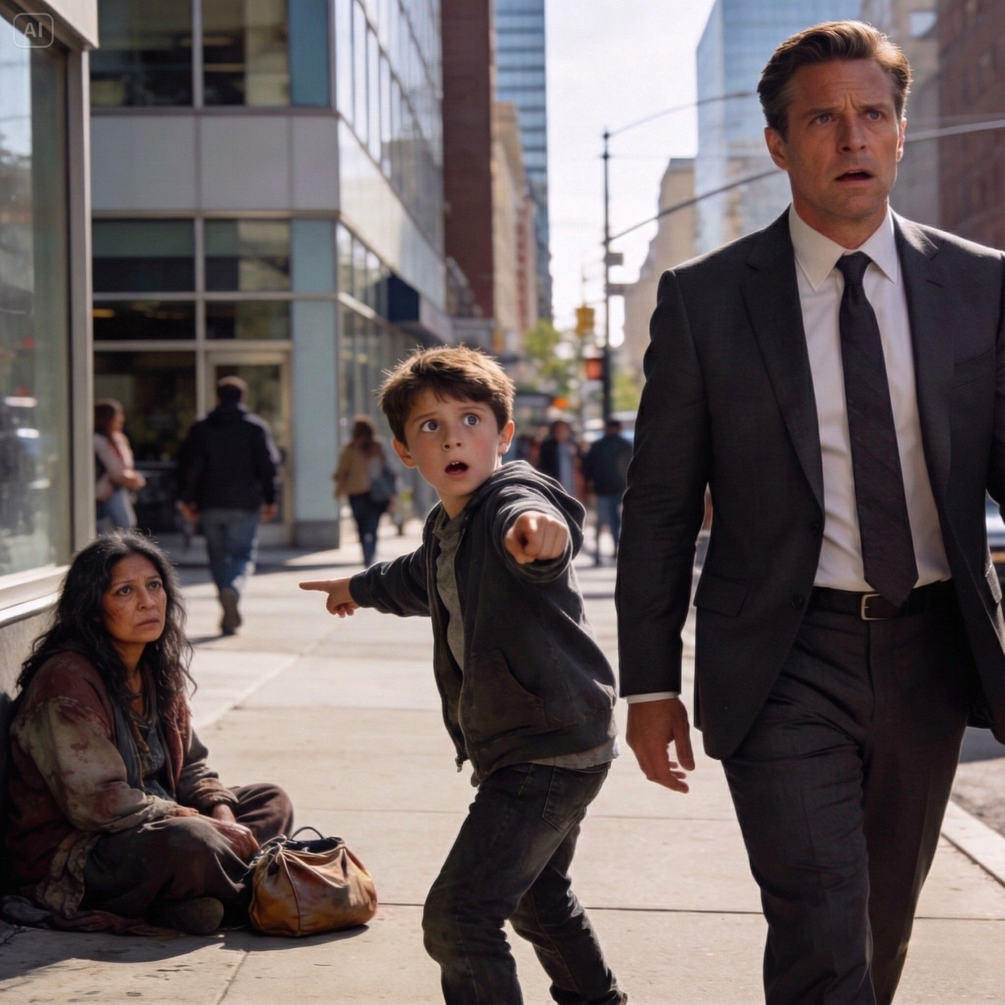 Un hombre rico ignoró a la mendiga… hasta que su hijo se detuvo, miró hacia...