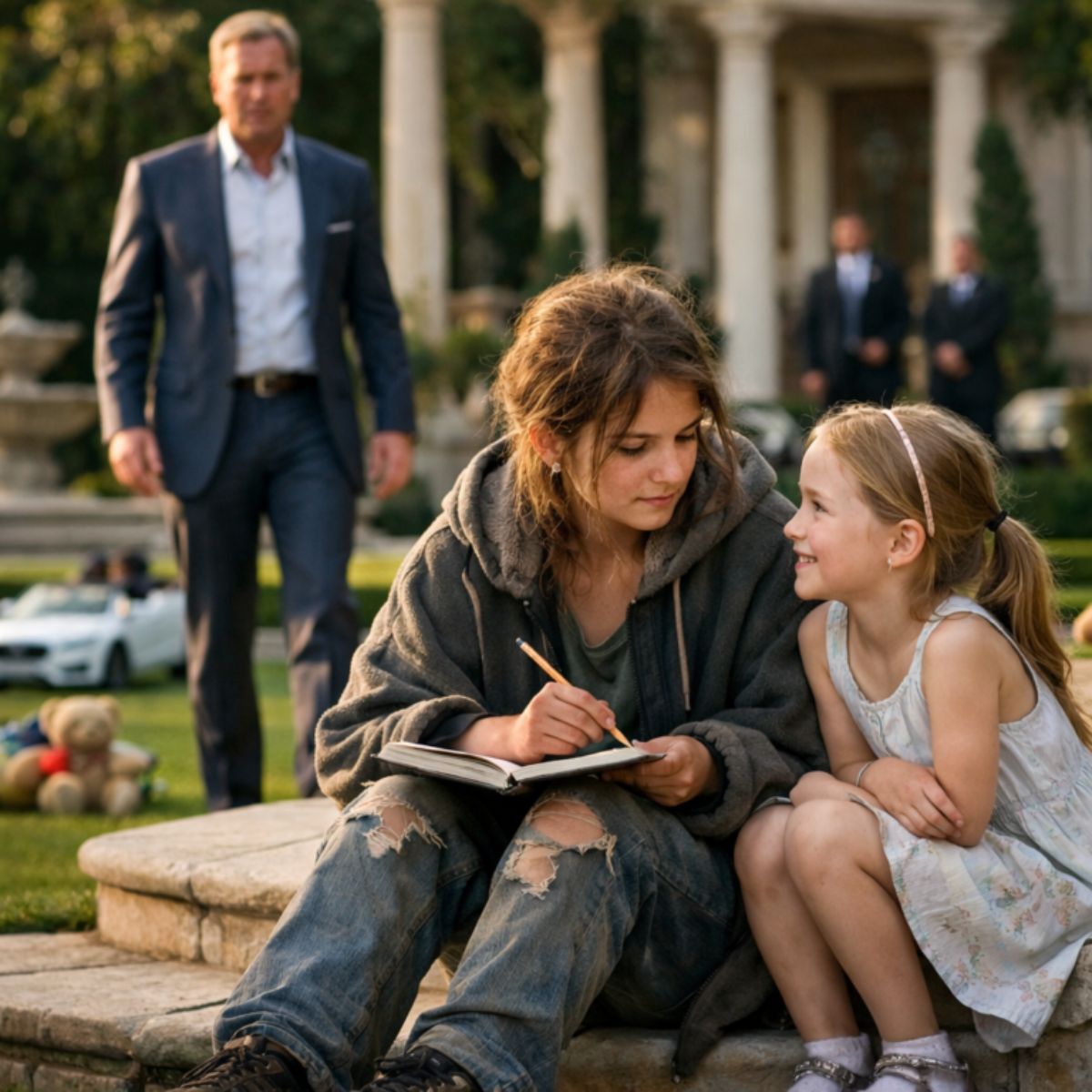 Un multimillonario ve a una niña sin hogar enseñándole a su hija… lo que hizo después dejó a todos impactados.