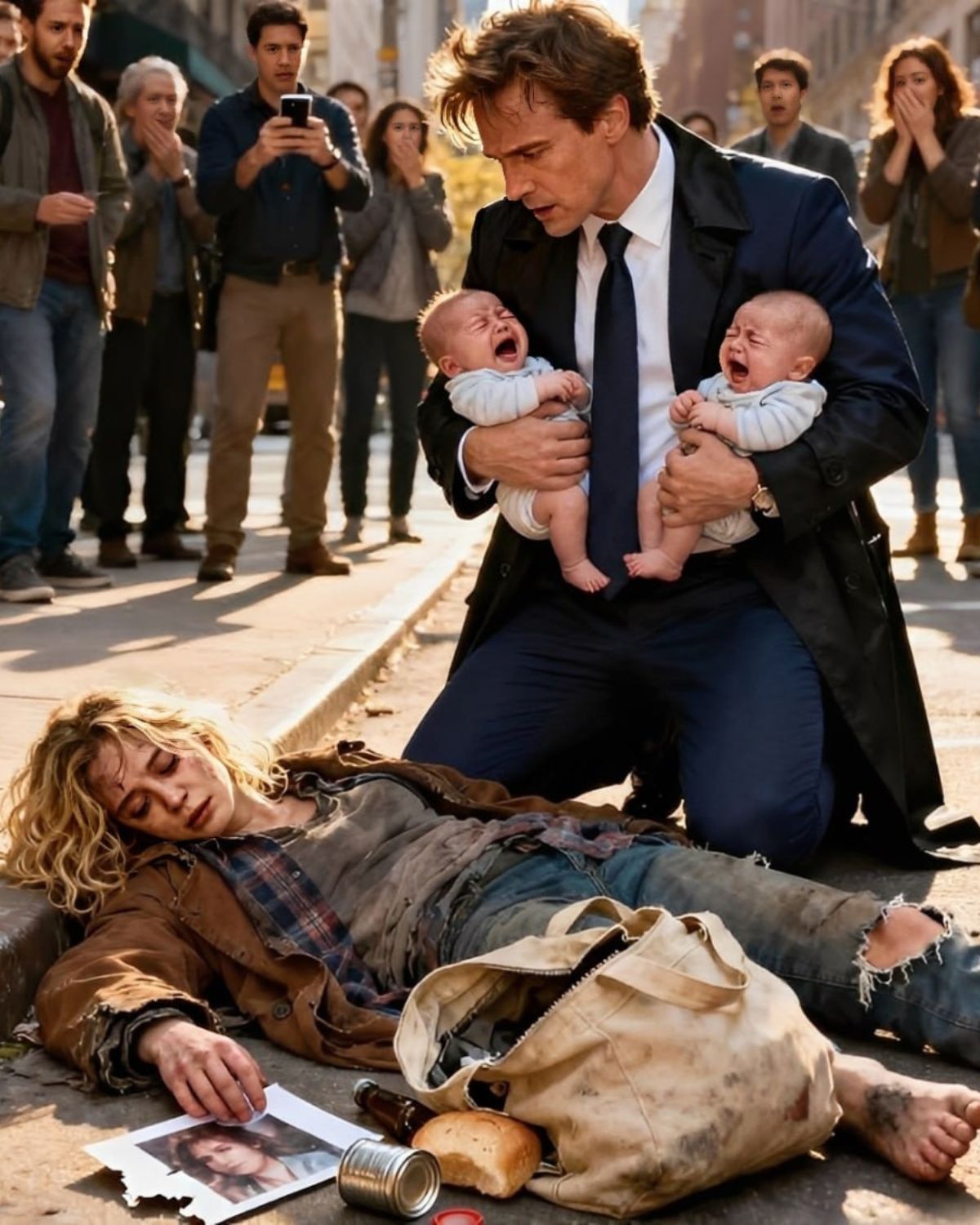 Una mujer sin hogar se desplomó al borde de la carretera, mientras sus gemelos de dos años lloraban desconsolados… y él quedó impactado al descubrir que los niños se parecían exactamente a él.