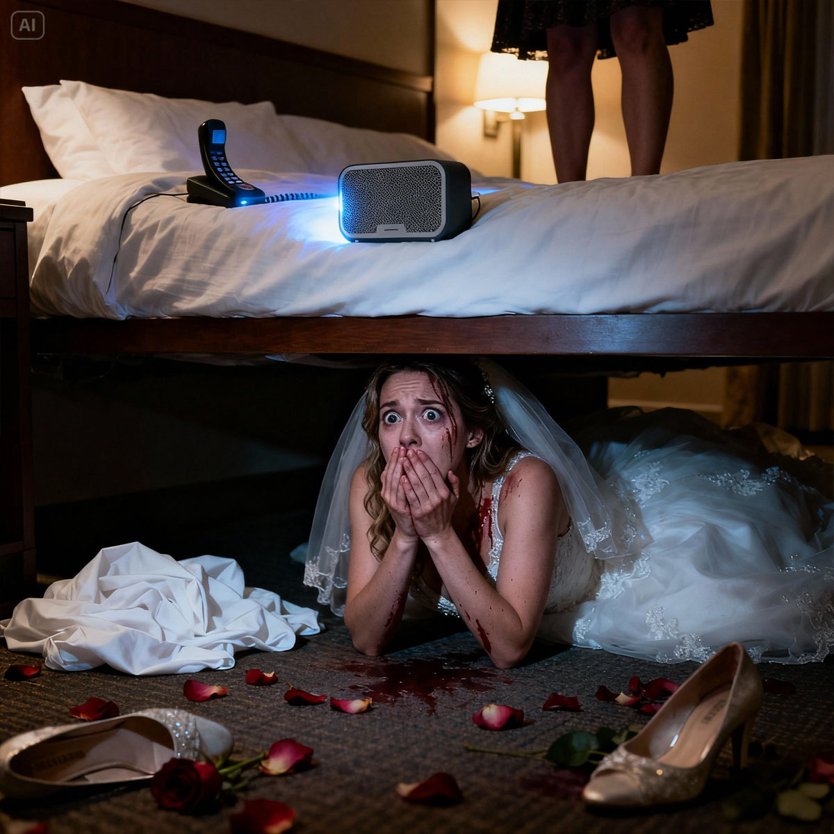 “En mi noche de bodas, me escondí debajo de la cama para hacerle una broma a mi esposo. Pero alguien más entró en la habitación y puso su teléfono en altavoz. Lo que escuché a continuación me heló la sangre…”