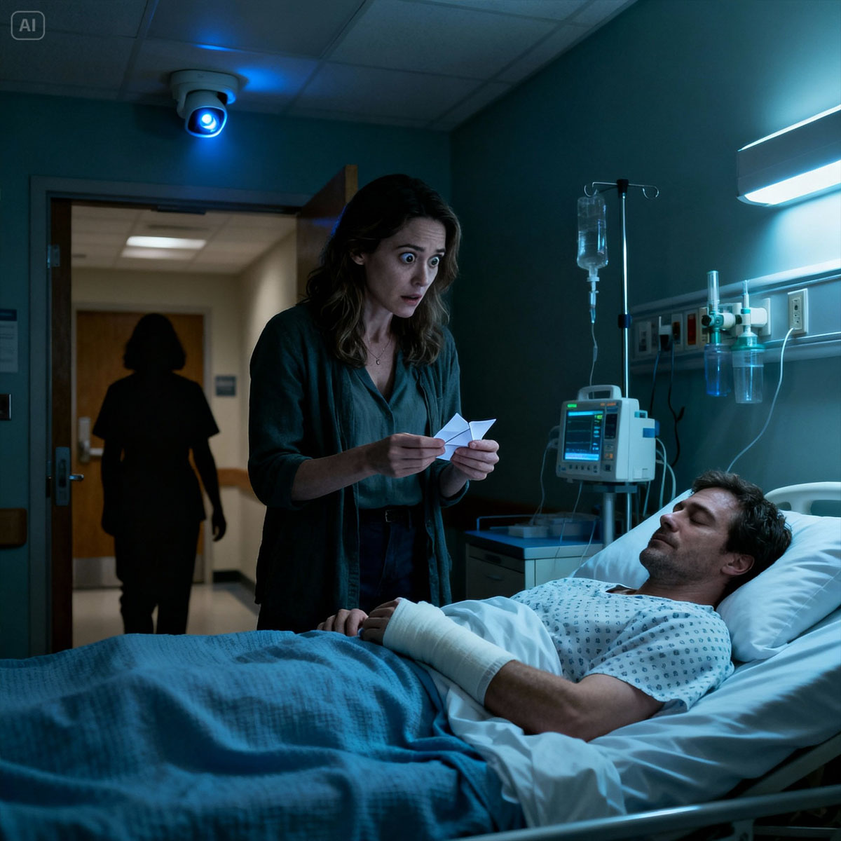 “Fui al hospital a cuidar a mi esposo, que se había roto un hueso. Mientras él dormía, la jefa de enfermeras deslizó un papel en mi mano: ‘No vuelvas. Revisa la cámara…’”