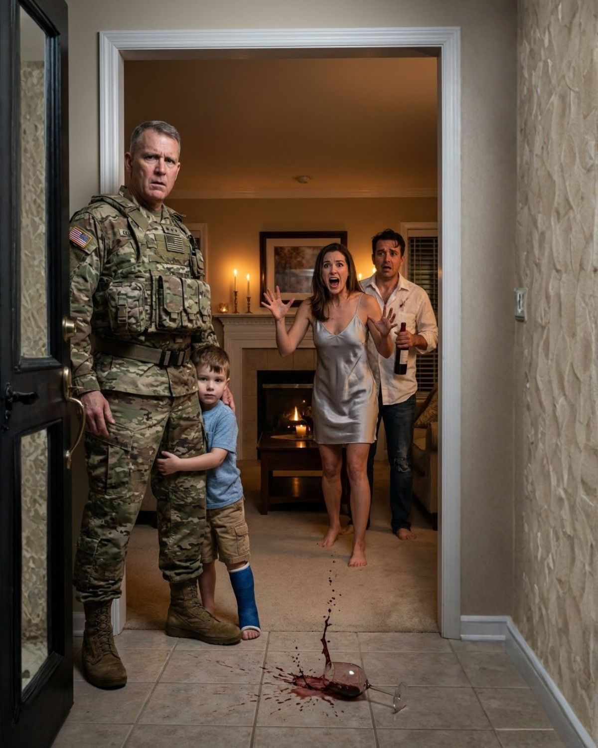 Recibí una llamada de mi hijo, con la voz temblorosa:—Papá… llegué a casa y vi a mamá con el tío Ted. Me encerró… tuve que saltar desde el tercer piso para escapar. Salí disparado, con el corazón atorado en la garganta. Mi niño se desplomó en mis brazos, temblando, lleno de moretones, sin poder respirar bien. —Siguen ahí dentro —sollozó contra mi pecho. Y en ese instante, algo dentro de mí rugió y despertó. Nadie lastima a mi hijo y se va como si nada.