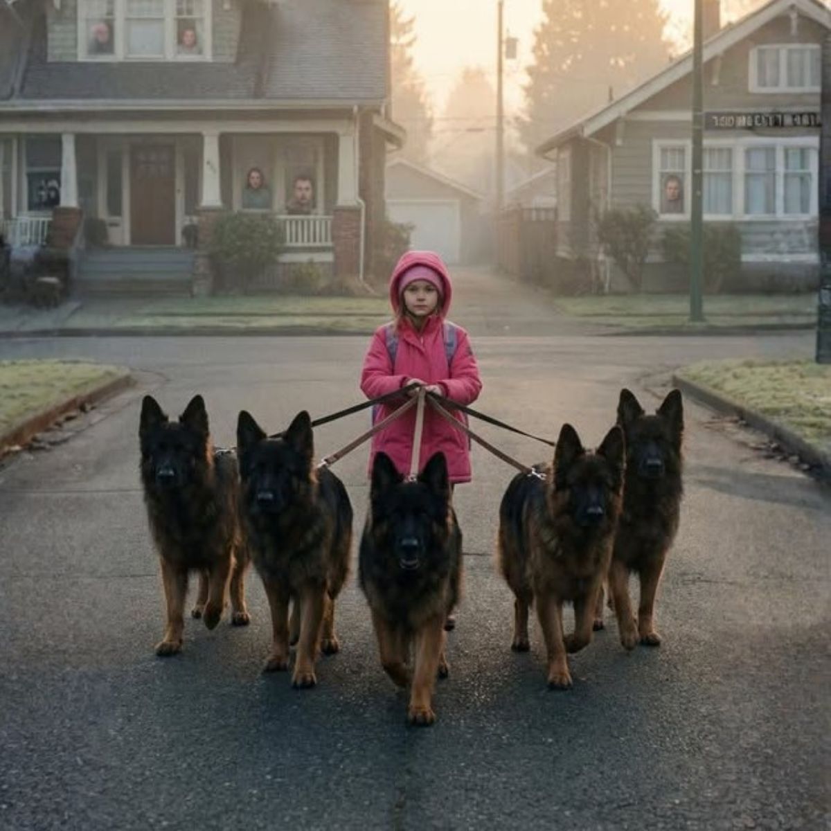Cada mañana, una niña pasea sola a cinco perros gigantes —pero el oscuro secreto que...