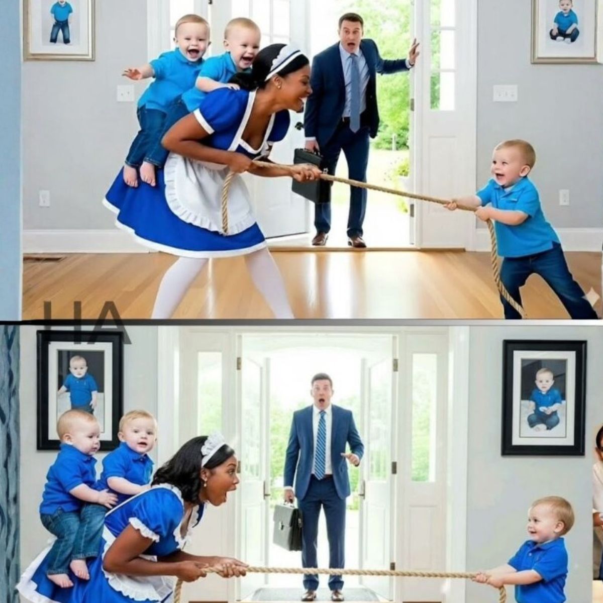 EL MULTIMILLONARIO LLEGÓ A CASA SIN AVISAR Y VIO A LA EMPLEADA DOMÉSTICA CON SUS TRILLIZOS… LO QUE VIO LO DEJÓ EN SHOCK.