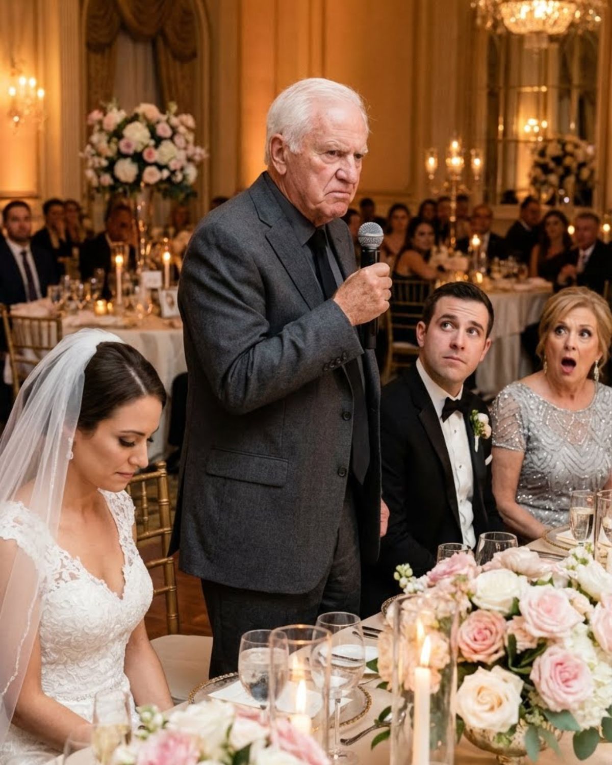 En medio de la boda, mi suegra anunció: “El apartamento será solo para nuestro hijo. Ella no recibirá nada.” El salón quedó en silencio. Entonces mi padre, un chofer de larga distancia, habló con calma: “Ahora me toca a mí.” Lo que dijo después la dejó sin palabras…
