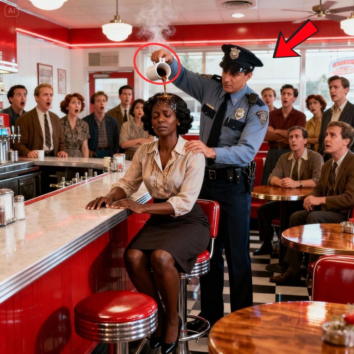 Un policía arrogante derrama café sobre una mujer negra y silenciosa… pero cuando descubre quién es en realidad, cae de rodillas, impactado…