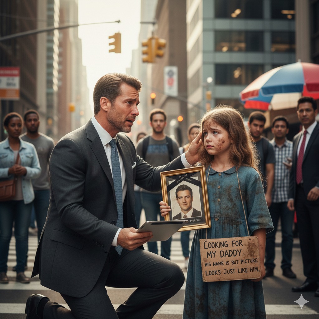 Creyendo que su esposa y su hija habían muerto hace 7 años, un multimillonario queda atónito al ver a una niña sosteniendo su propia foto memorial mientras busca a su papá en la calle…