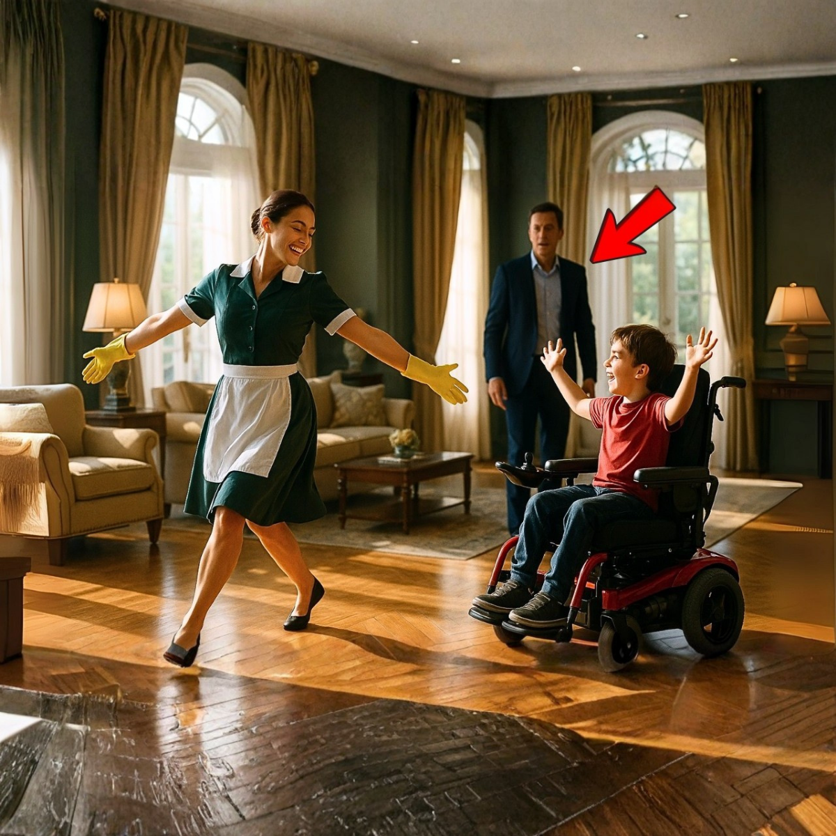 El millonario vio a su señora de la limpieza en la sala bailando para su hijo especial. Su actitud era increíble.