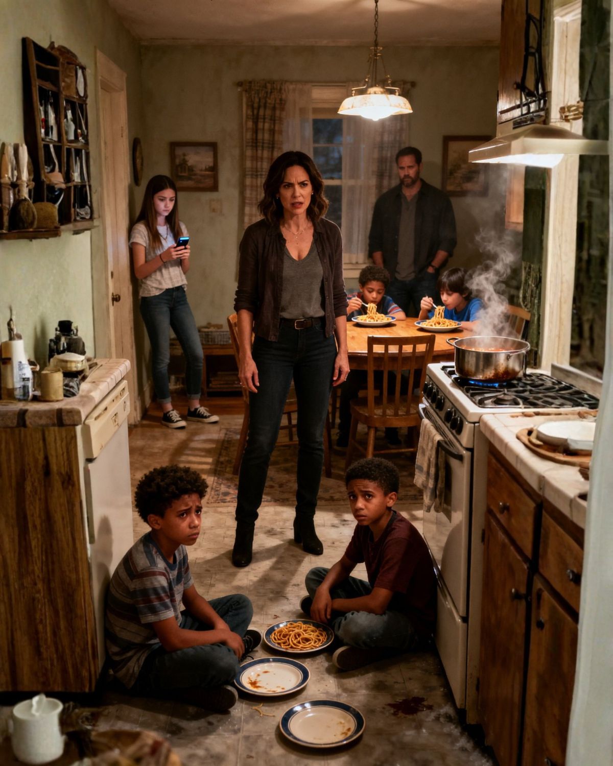 Nunca le dije a mi yerno que yo era una interrogadora militar retirada. Para él, yo solo era “niñera gratis”. En la cena, su madre me obligó a comer de pie en la cocina, burlándose: “Los sirvientes no se sientan con la familia”. Me quedé en silencio. Luego encontré a mi nieto de cuatro años encerrado en un armario a oscuras por “llorar demasiado fuerte”. Mi yerno sonrió con suficiencia. “Tiene que endurecerse, igual que su abuela débil”. No grité. Con calma cerré con llave todas las puertas, les pedí a todos que se sentaran… y lo que pasó después hizo imposible que se quedaran en sus asientos.