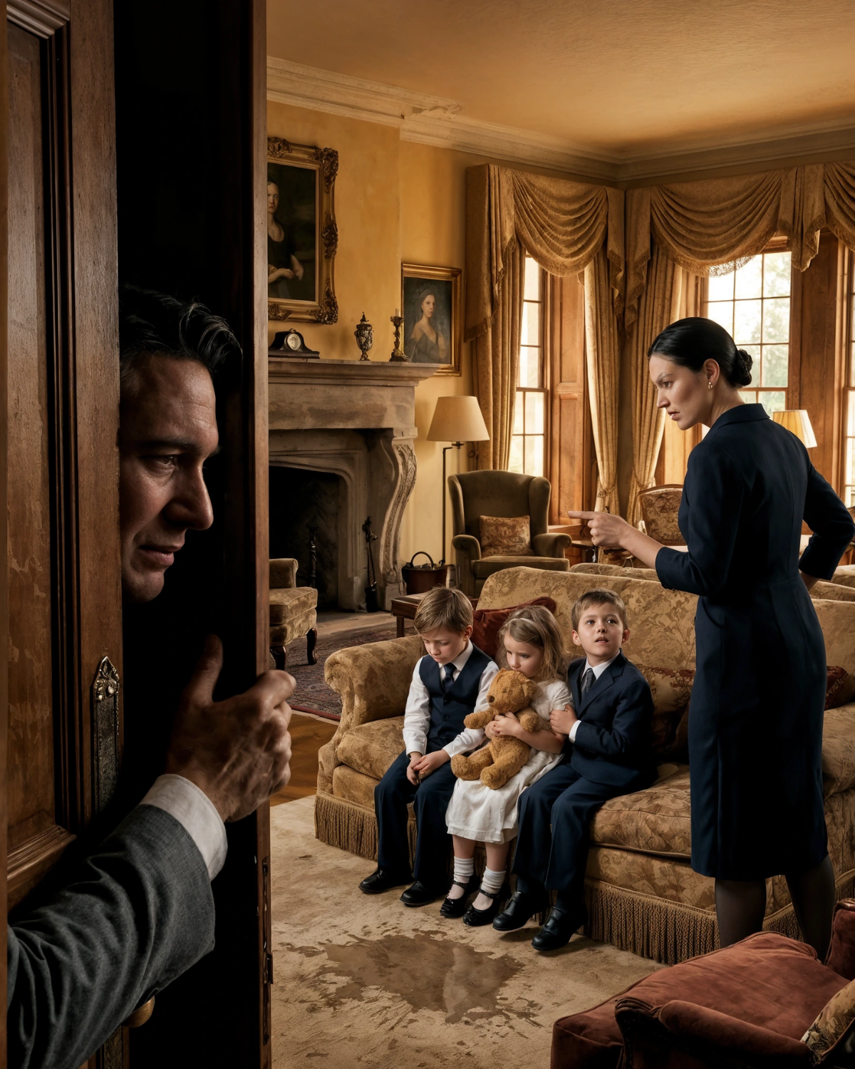 Un viudo millonario se escondió para observar cómo su prometida trataba a sus tres gemelos… hasta que la verdad estalló y lo cambió todo. En la cima de una suave colina se alzaba la Finca Callahan, un lugar que las revistas habían apodado en su día La casa donde vivía la felicidad. Sus paredes de piedra blanca brillaban al atardecer como algo sagrado, y los amplios ventanales reflejaban praderas cuidadosamente cuidadas y robles cuyas raíces habían visto más verdades de las que cualquier visitante habría podido imaginar. Pero dentro de esa perfección pulida vivía algo inquieto, algo inestable, como una cuerda de violín tensada tanto que un solo movimiento en falso podría romperla.