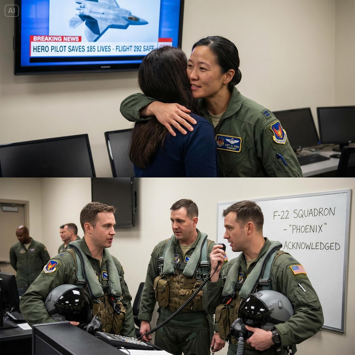 Ella salvó a 185 pasajeros en el cielo… y, momentos después, los pilotos de F-22...
