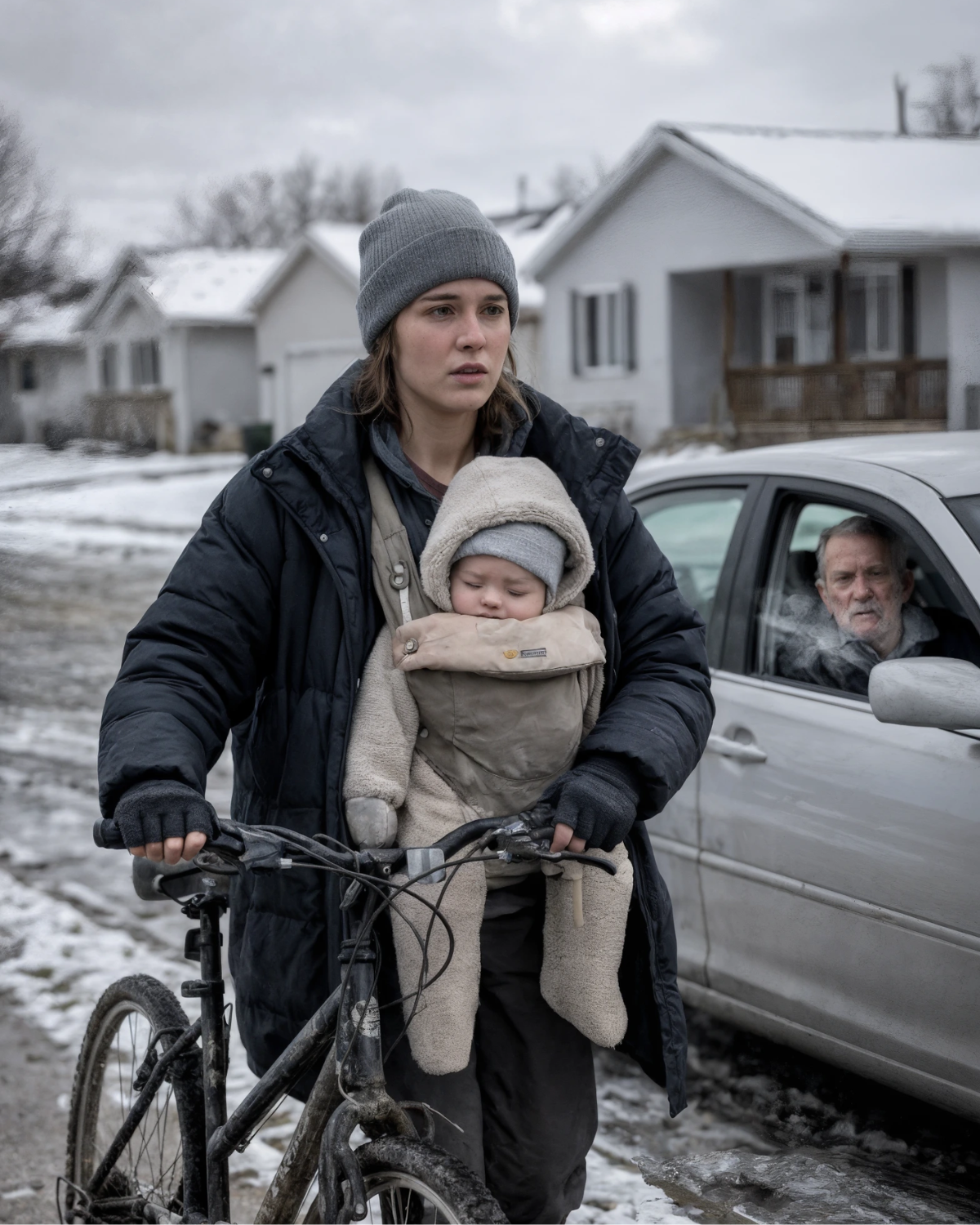 Caminaba por la nieve helada con mi recién nacido apretado contra mí, porque mis padres decían que estábamos en la ruina. De repente, mi abuelo multimillonario se detuvo a nuestro lado en su coche. “¿Por qué no estás conduciendo el Mercedes que te compré?”, exigió, con la voz dura. “Lo tiene mi hermana”, susurré. Él se giró hacia el chófer. “Vamos a la comisaría.” Y cuando revisamos los movimientos bancarios, la verdad sobre mi supuesta “pobreza” dejó al agente sin palabras…