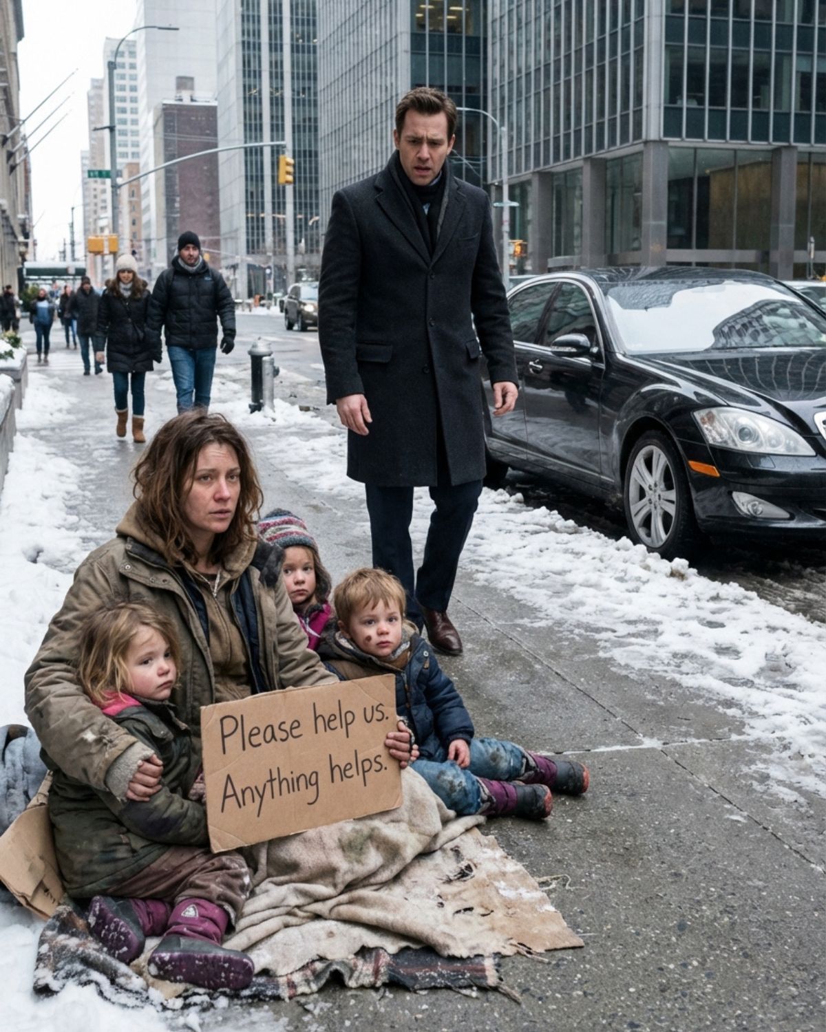 Un millonario vio a su ex pidiendo limosna en la calle con tres niños que...