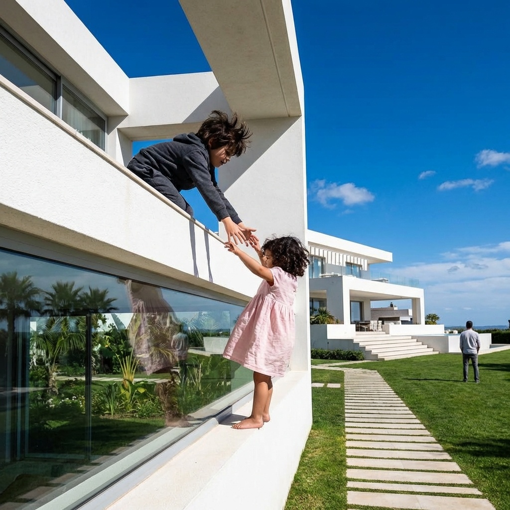 El pobre joven subió a la mansión para salvar a la niña que estaba cayendo; su padre millonario fue testigo de todo.