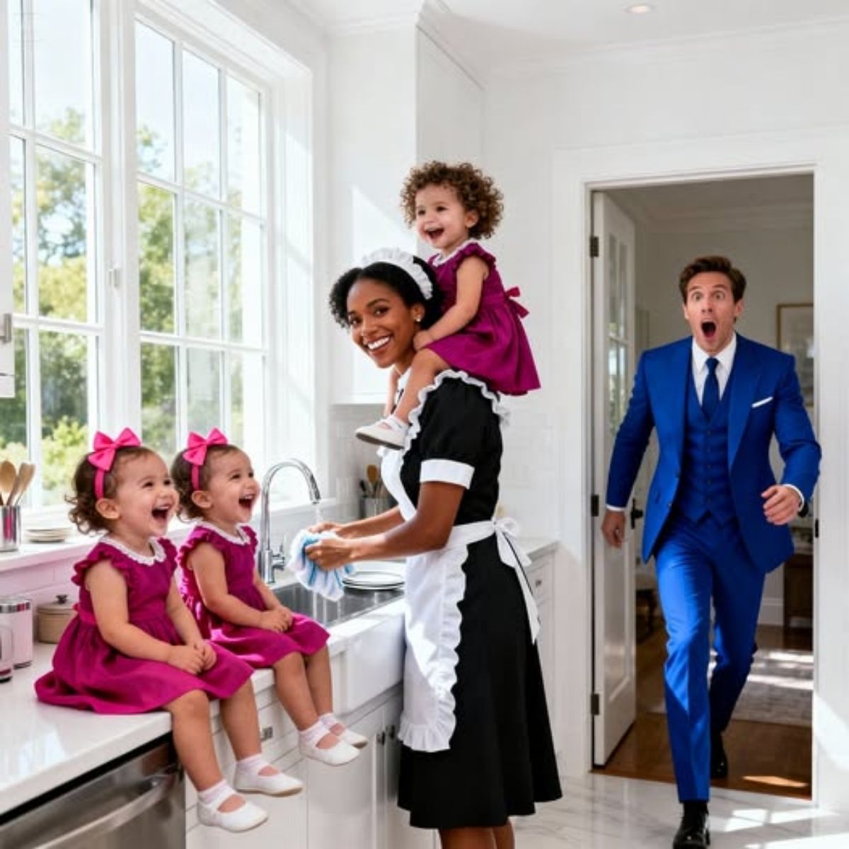 El multimillonario llega a casa sin avisar y ve a la empleada con sus trillizos — lo que vio lo dejó en shock.