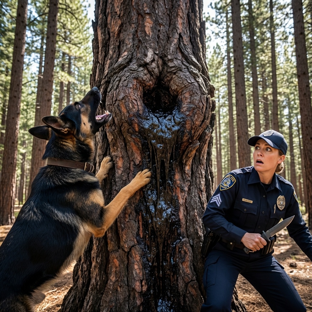 Perro ladró a un bulto extraño en un viejo árbol — cuando la policía lo abrió, todos se congelaron.