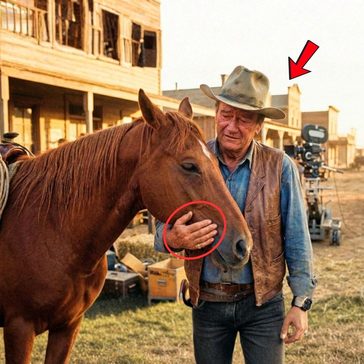 John Wayne SE DERRUMBA cuando su caballo se niega a dejarlo—La razón que nadie esperaba
