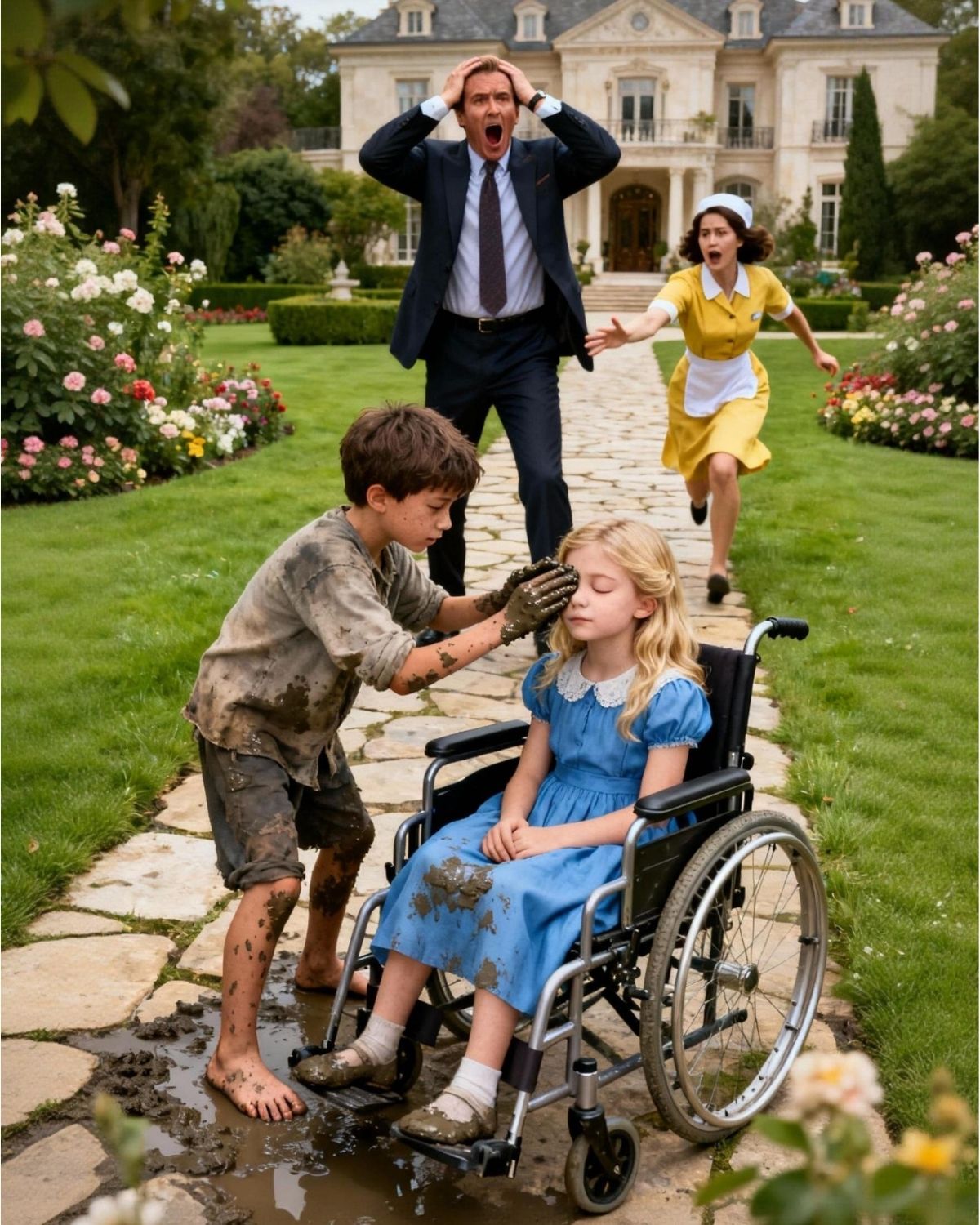 “Te voy a poner barro en los ojos y volverás a ver”, dijo el hijo de la empleada de limpieza a la hija ciega de un multimillonario… y lo que pasó después dejó a todos sin palabras.