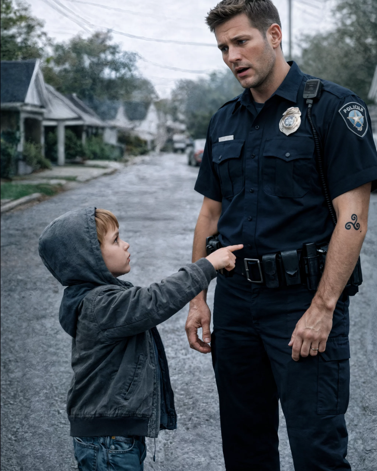 Un niño pequeño señaló el tatuaje del policía y dijo: “Mi papá tenía el mismo” — Era una patrulla tranquila por la mañana… hasta que el agente se quedó paralizado.