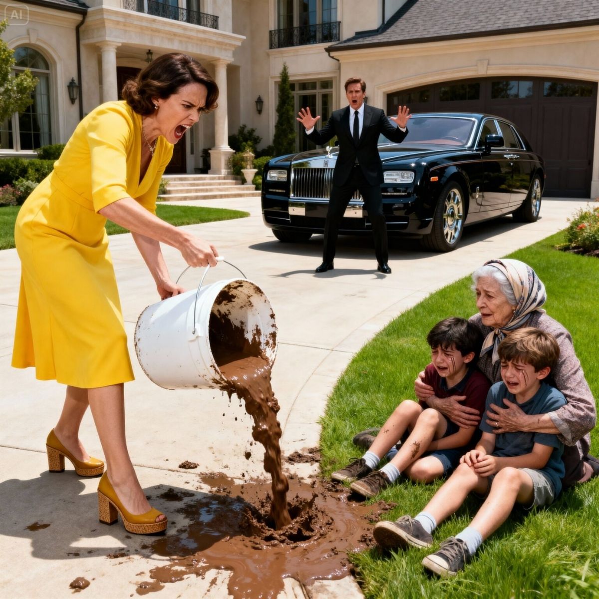 Un MULTIMILLONARIO sorprende a su nueva esposa rociando a su madre y a sus hijos con agua sucia. Su reacción dejó a todos en shock…