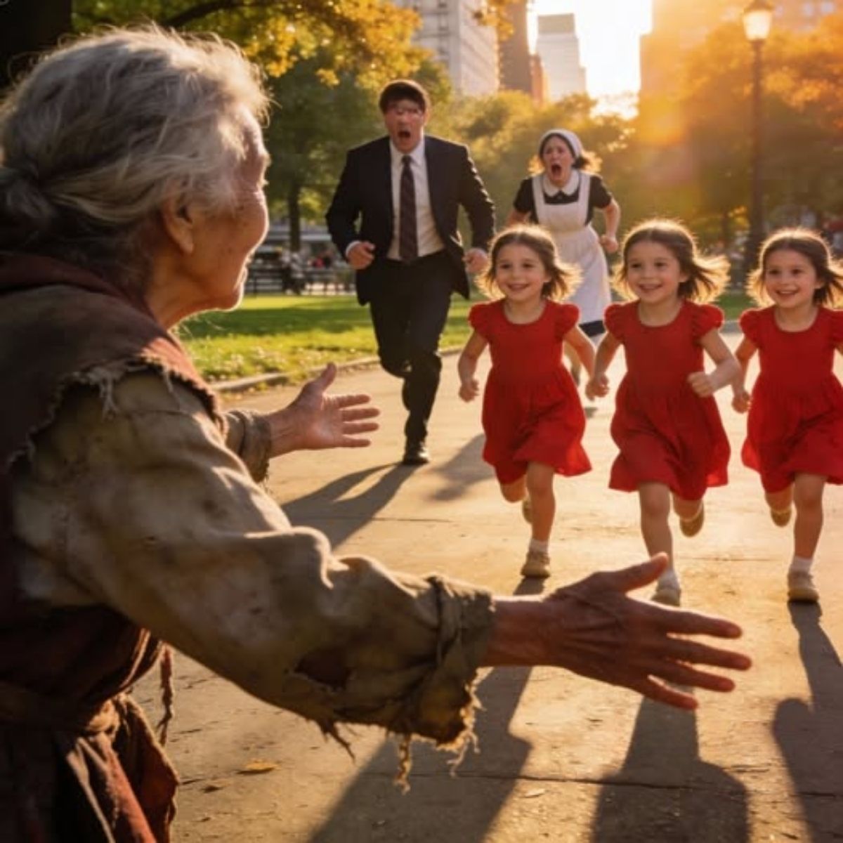Las hijas trillizas del millonario eran ciegas… hasta que la vieja mendiga lo cambió todo…