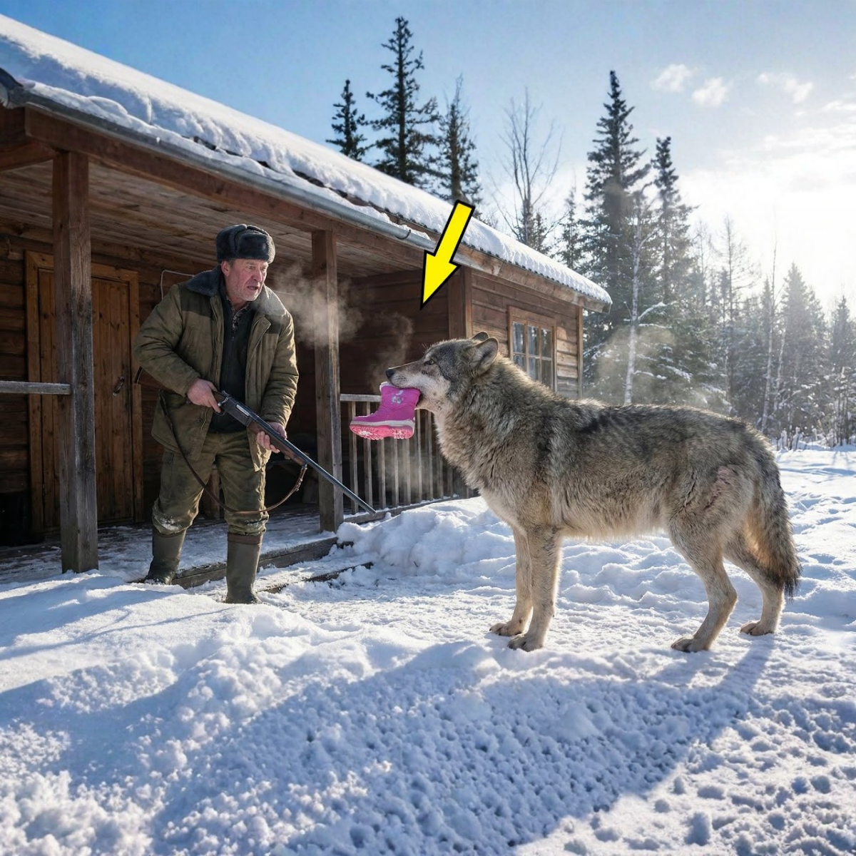 El cazador apretó con fuerza su arma, pero se quedó sin palabras cuando vio algo en la boca del lobo.