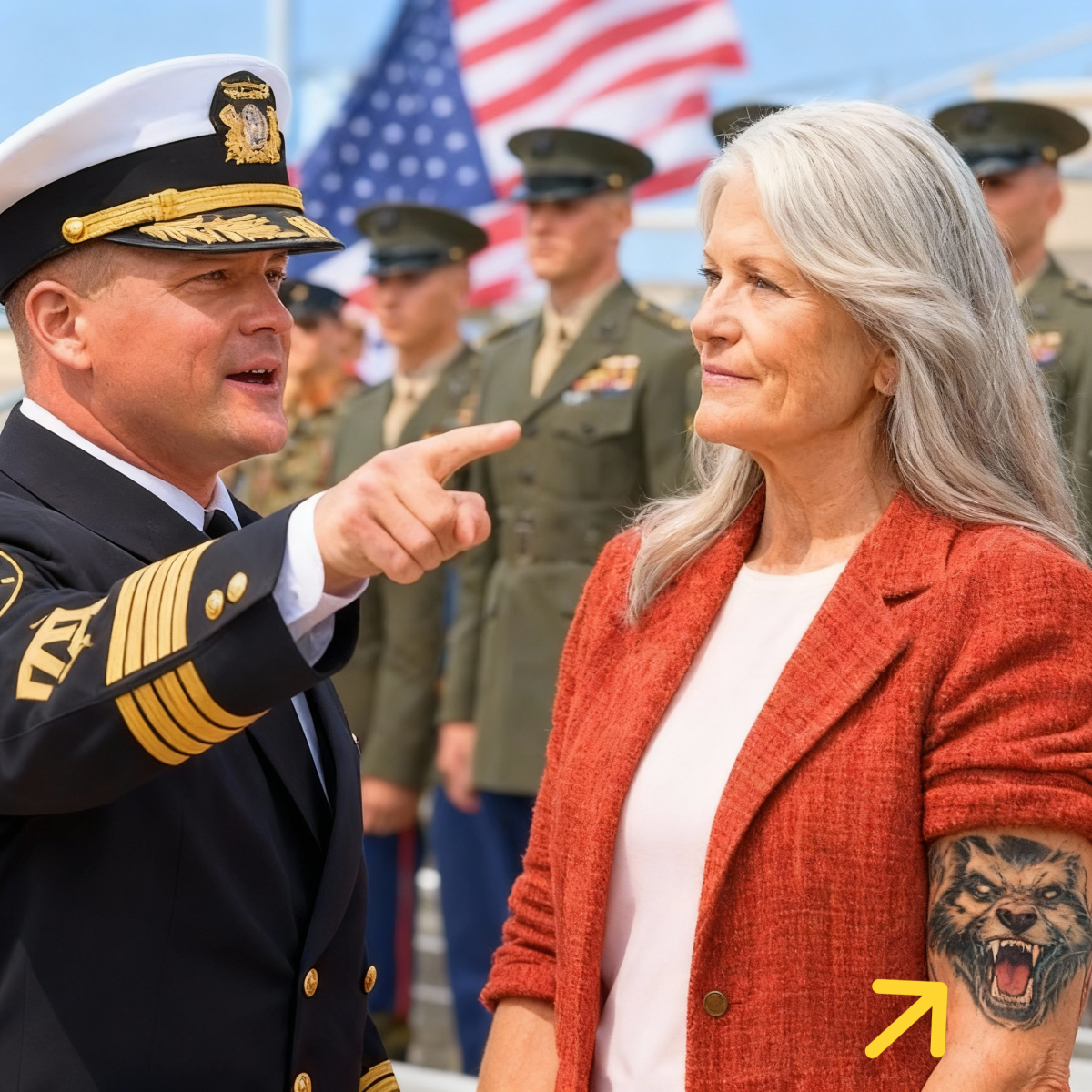 Ella vino a ver a su nieto graduarse — hasta que el comandante de la USMC vio su tatuaje y se congeló.