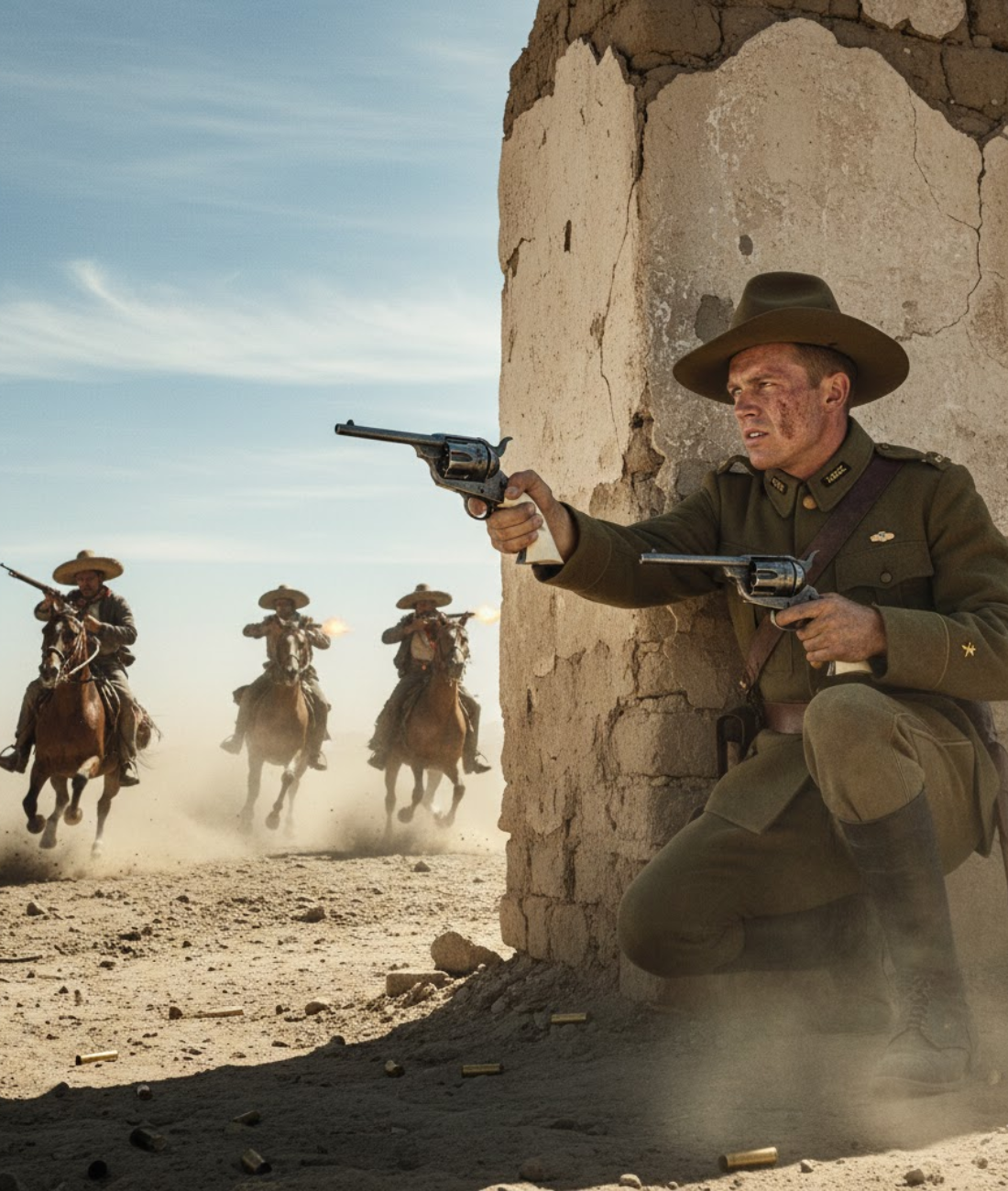 14 de mayo de 1916. Rubio, Chihuahua, México. El segundo teniente George S. Patton se agazapó detrás...