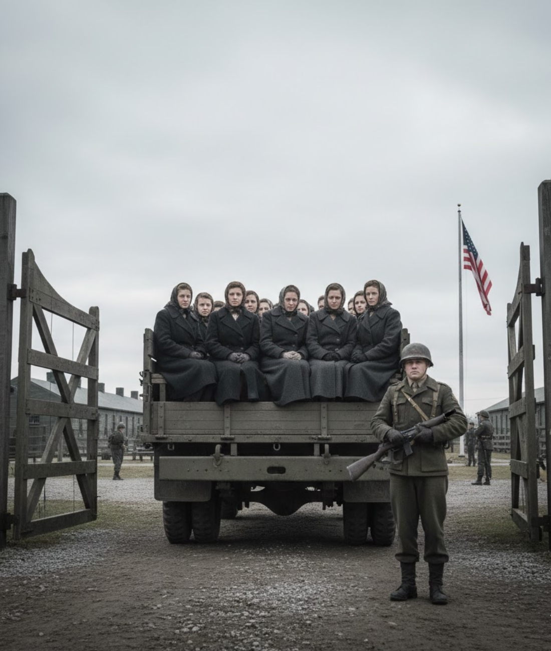 12 de abril de 1945 — Campamento Shanks, Nueva York El camión de transporte pasó...