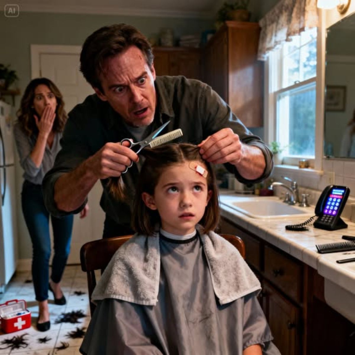 Mi esposo llegó a casa de su trabajo y estaba cortando el cabello de nuestra hija de ocho años como de costumbre. De repente, sus manos se detuvieron. “Ven aquí un segundo.” Su voz temblaba. Mientras levantaba suavemente el cuero cabelludo de nuestra hija, su rostro se puso pálido.