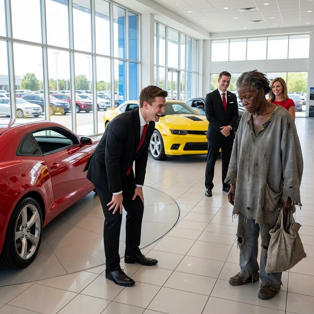 Un millonario disfrazado de mendigo fue expulsado de su concesionario de coches… Sus acciones asombraron a todos.